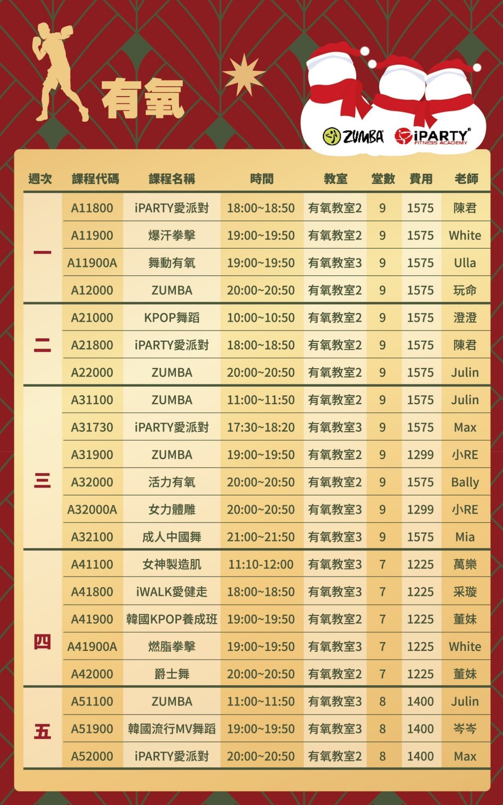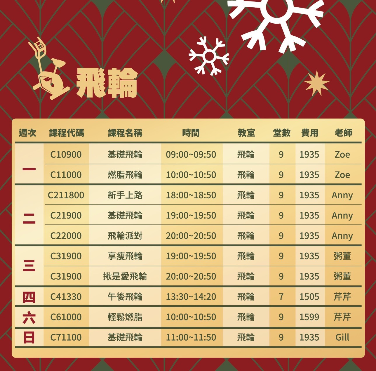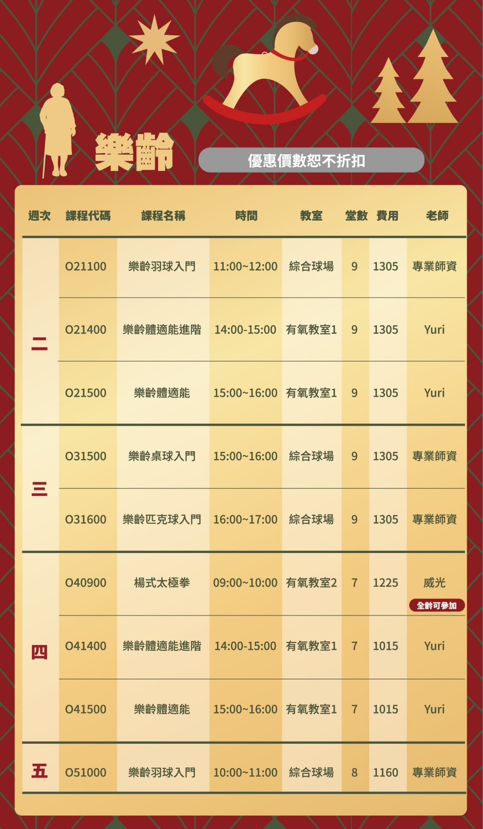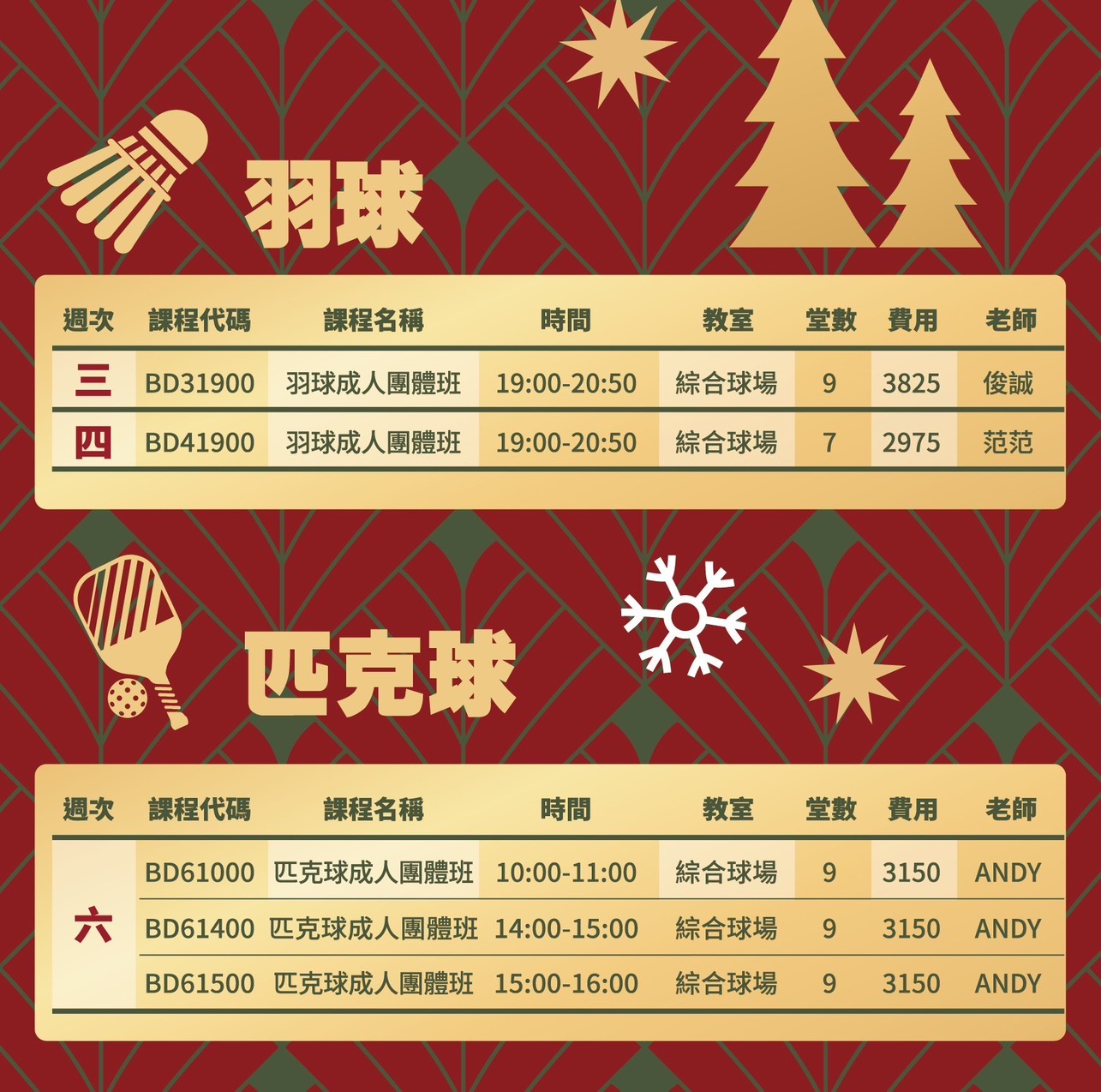 最新期課課表