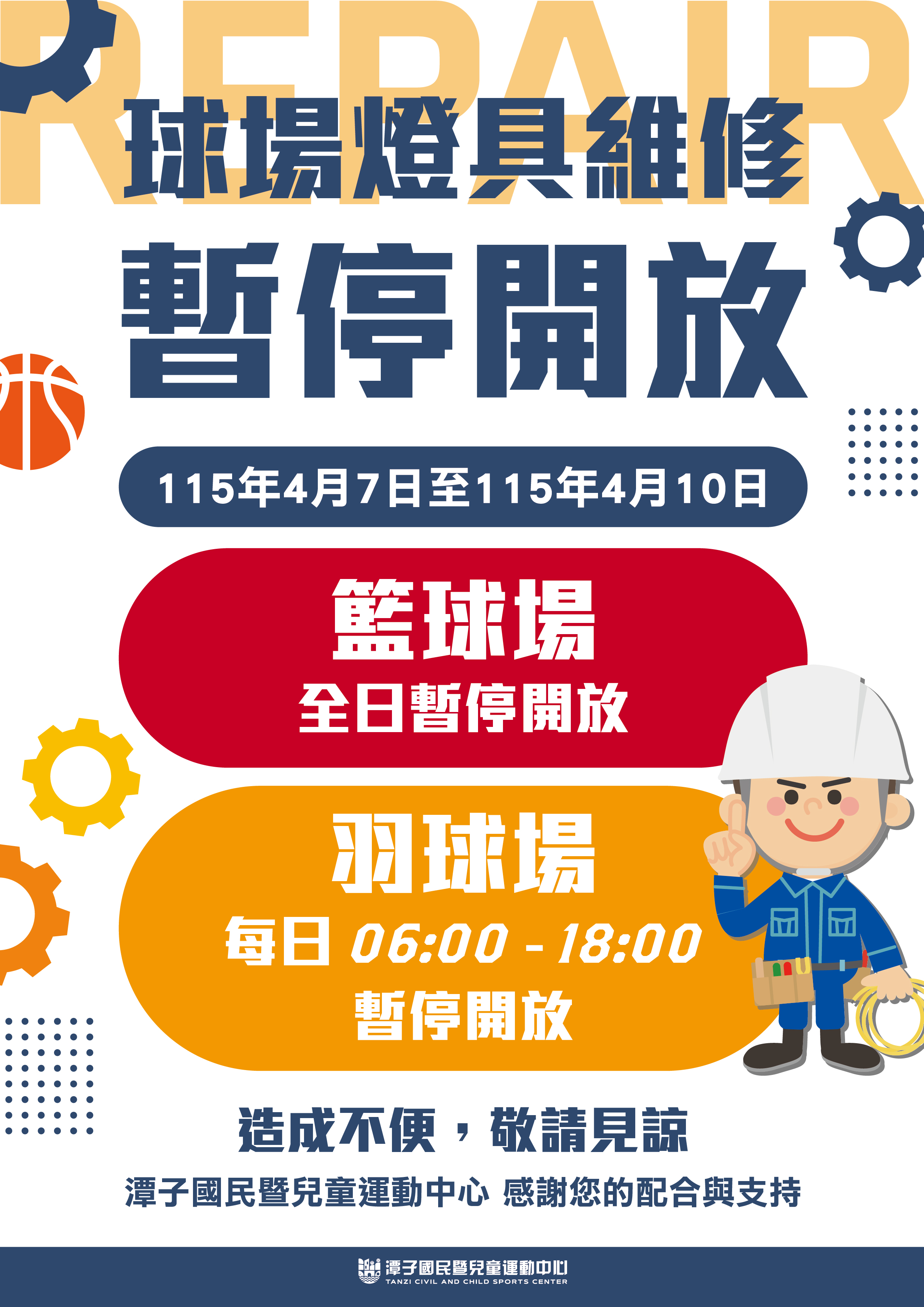 球場暫停開放公告
